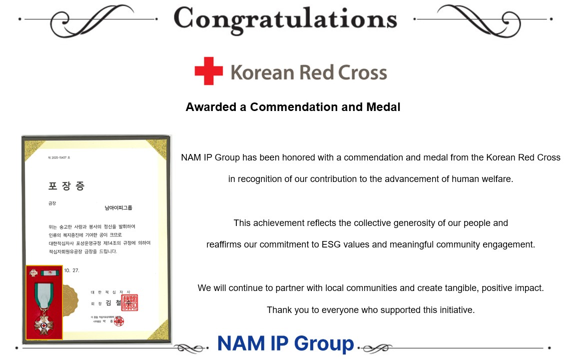 NAM IP Group has been honored with a commendation and medal from the Korean Red Cross